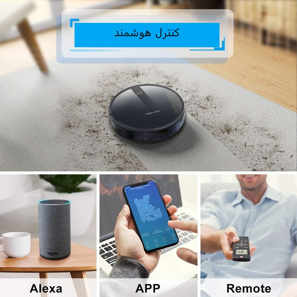 تمیز کردن کارآمد: Tesvor X500 قدرت مکش بالایی دارد که امکان تمیز کردن بسیار کارآمد را فراهم میکند. این دستگاه شامل یک غلتک و دو برس جانبی است که هر گوشهای را کاملاً تمیز میکند. بیصدا و کارآمد.