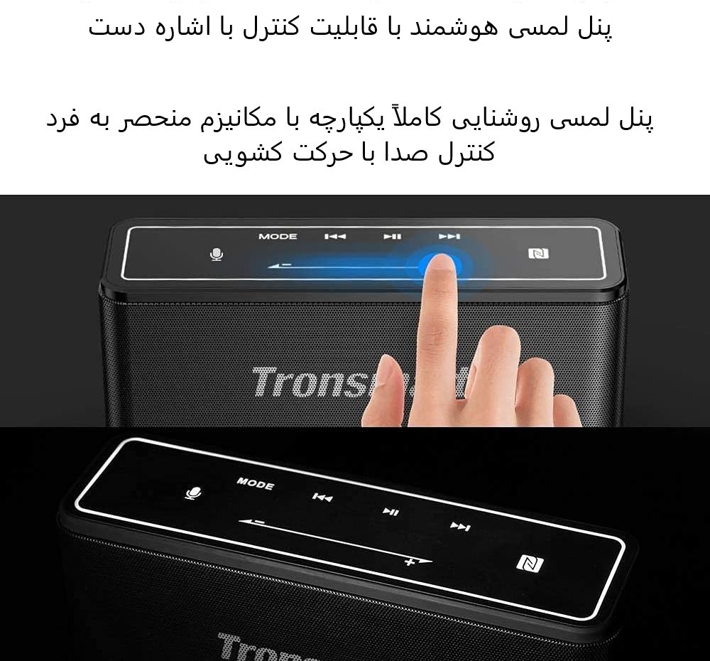 پنل لمسی حساس با چراغ LED: بلندگوی بلوتوث قابل حمل Tronsmart Mega رابط لمسی شگفتانگیز و قابل توجهی دارد که با امکان کنترل آهنگهای در حال پخش، میزان صدا و موارد دیگر با نوک انگشتان، کنترل حال و هوا و انرژی هر مهمانی را نسبتاً آسان میکند.