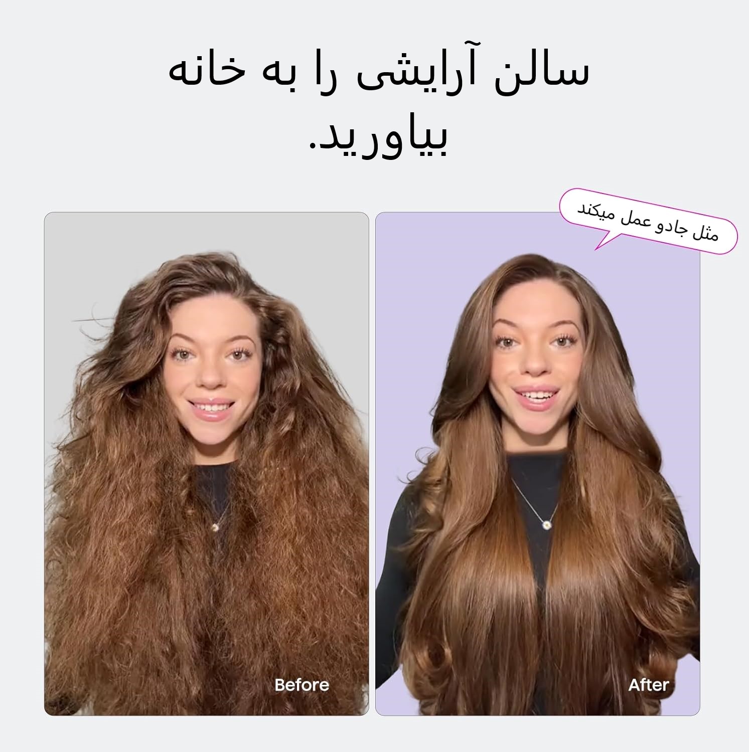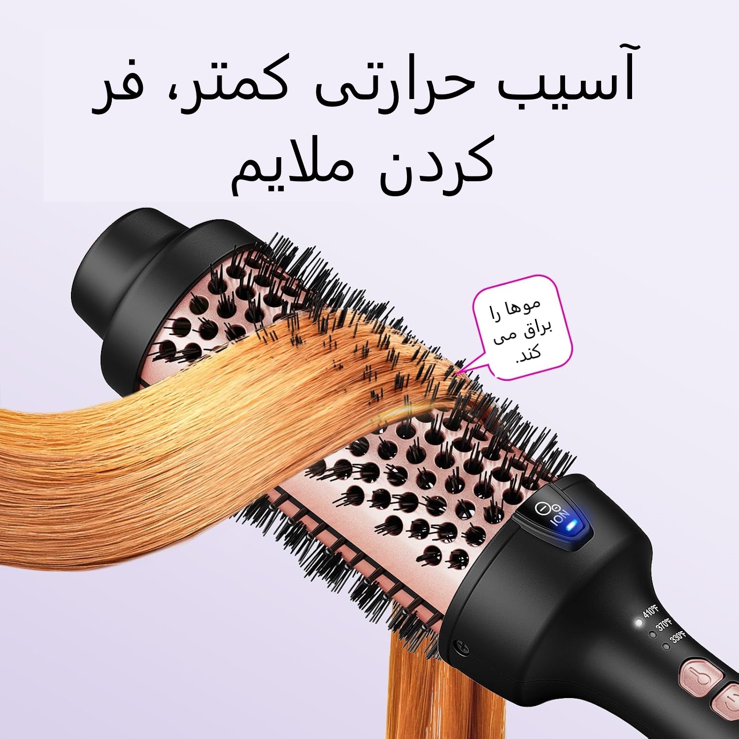حالت دادن آسان، نصف زمان: حالت دادن، فر کردن و باز کردن گره مو در یک مرحله! این برس حرارتی دوکاره هنگام شانه کردن موهای شما، آنها را فر میکند و زمان حالت دادن را به نصف کاهش میدهد. نیازی به ابزار اضافی مانند شانه یا کلیپس نیست - فقط در عرض چند دقیقه موهایتان را صاف و بدون دردسر حالت دهید.