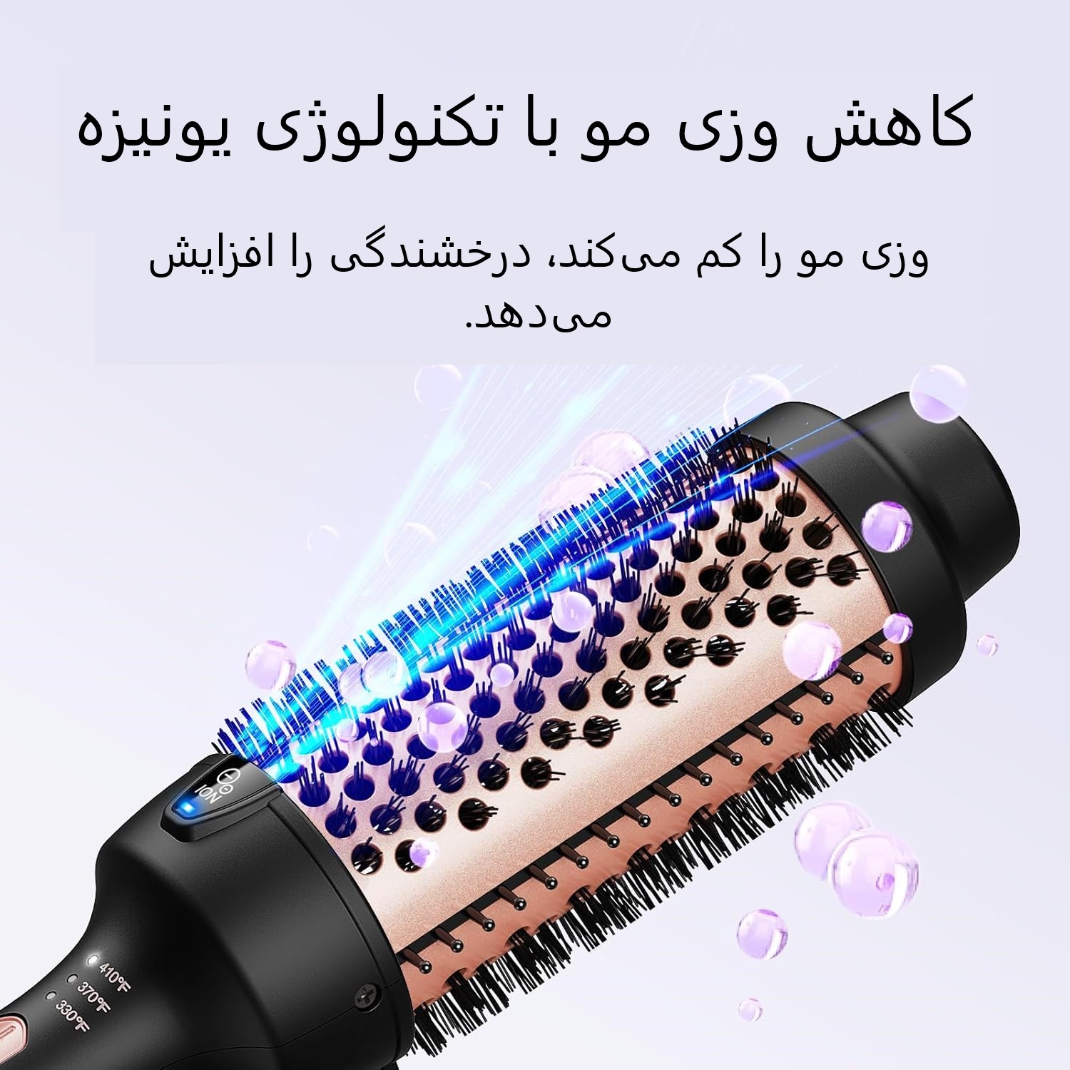 کاهش وز مو با یونهای منفی: برس حرارتی ما یونهای منفی را آزاد میکند تا رطوبت را حفظ کند، هر تار مو را صاف کند و وز و گره خوردگی را کاهش دهد. با هر حرکت برس، به راحتی به یک نتیجه ابریشمی و بدون وز دست یابید.