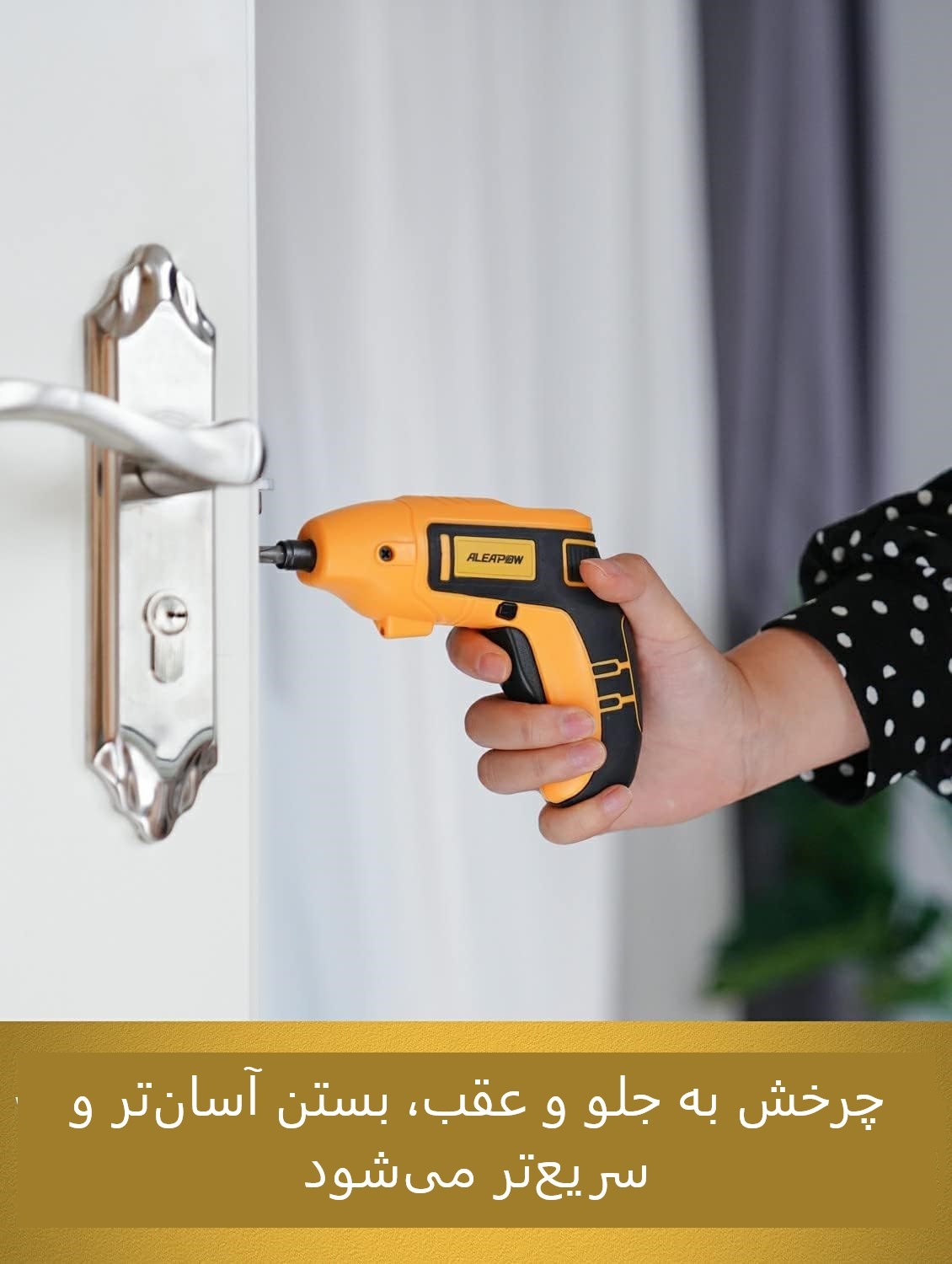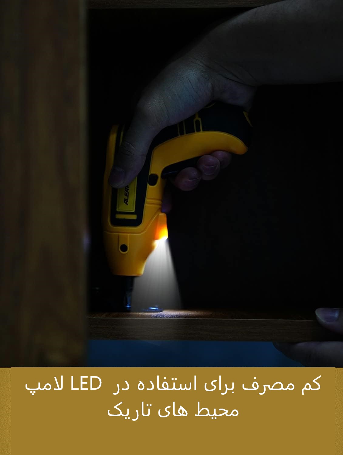 پیچ گوشتی شارژی Aleapow مدل O2 با وزن بسیار کم و قدرتمند مجهز به لامپ ال ای دی برای استفاده در محیط های تاریک_ به همراه 10 سری با قابلیت اهنربایی برای نگه داشتن پیچ ها_شارژ با کابل شارژ USB